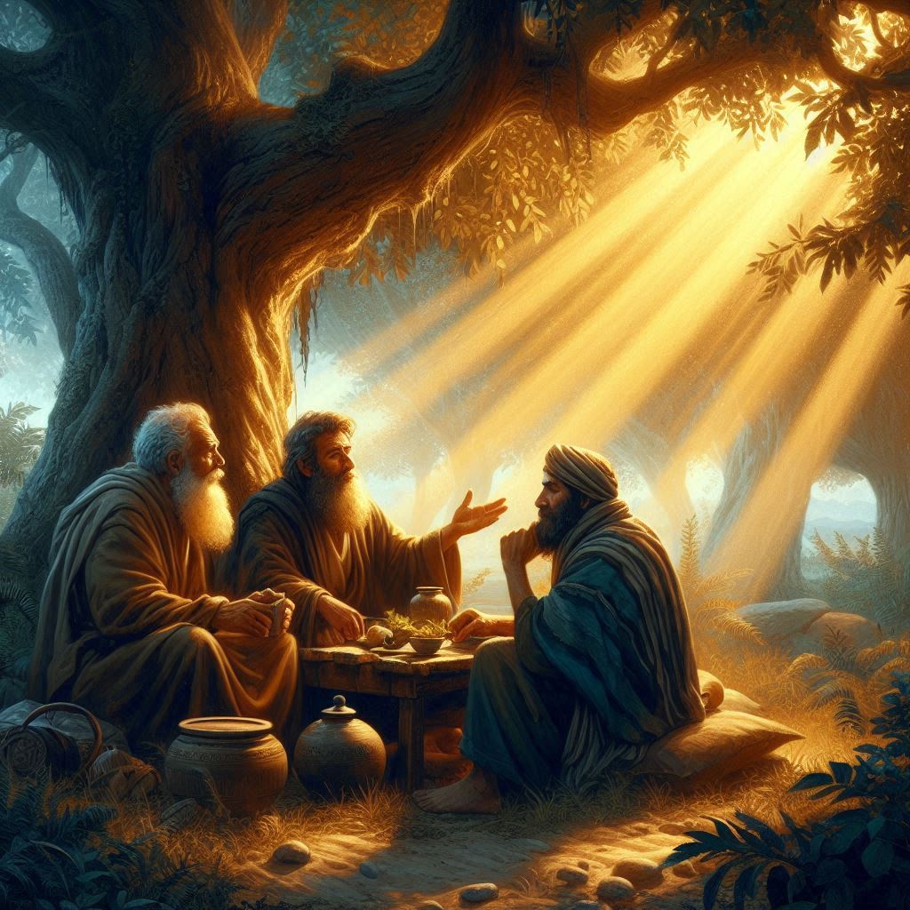 할례를 받은 아브라함이 하루 중 가장 더운 정오에 자기가 거하는 장막 문에 앉아 쉬고 있었습니다. 그런데 갑자기 그때 세 사람의 나그네가 아브라함의 눈앞에 나타났습니다. 한 분은 육신을 입고 내려오신 여호와였고 나머지 둘은 천사들이었습니다.