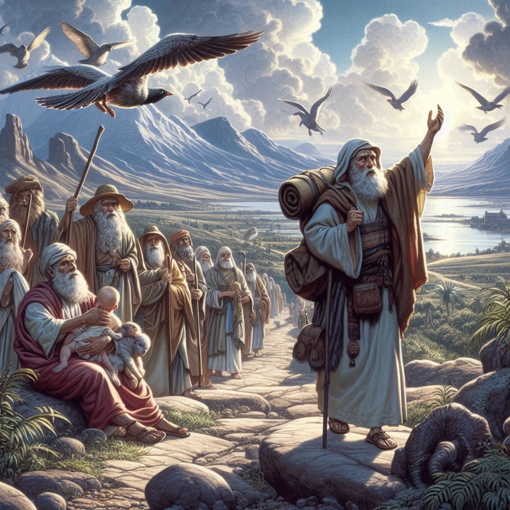 "주께서 아브람에게 말씀하셨다. ‘너는, 네가 살고 있는 땅과, 네가 난 곳과, 너의 아버지의 집을 떠나서, 내가 보여 주는 땅으로 가거라. 내가 너로 큰 민족이 되게 하고, 너에게 복을 주어서, 네가 크게 이름을 떨치게 하겠다. 너는 복의 근원이 될 것이다. 너를 축복하는 사람에게는 내가 복을 베풀고, 너를 저주하는 사람에게는 내가 저주를 내릴 것이다. 땅에 사는 모든 민족이 너로 말미암아 복을 받을 것이다. 아브람은 주께서 말씀하신 대로 길을 떠났다. 롯도 그와 함께 길을 떠났다. 아브람이 하란을 떠날 때에, 나이는 일흔다섯이었다." (창세기 12장 1~4절)
