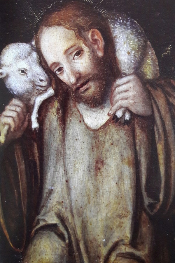 그런데 독일의 화가 루카스 크라나흐가 그린 ‘선한 목자’는 조금 다릅니다. 그의 그림 속 예수님은 화려하지도, 인자하게 미소 짓지도 않습니다. 남루한 옷을 입고, 얼굴에는 피곤이 묻어납니다. 오랜 시간 길을 걸으며 숲을 헤치고 강을 건너고, 때로는 늑대와 맞서 싸운 흔적처럼 보입니다. 그만큼 옷은 해어지고, 얼굴은 초췌합니다.